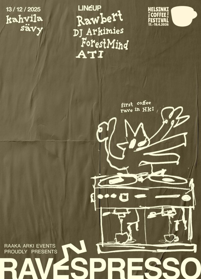 Maailmalla suosion saavuttanut kahviloissa järjestettävä coffee rave-ilmiö saapuu Suomeen. Ensimmäinen Ravespresso-tapahtuma järjestetään 13. joulukuuta Helsingin Kalliossa kahvila Sävyssä.