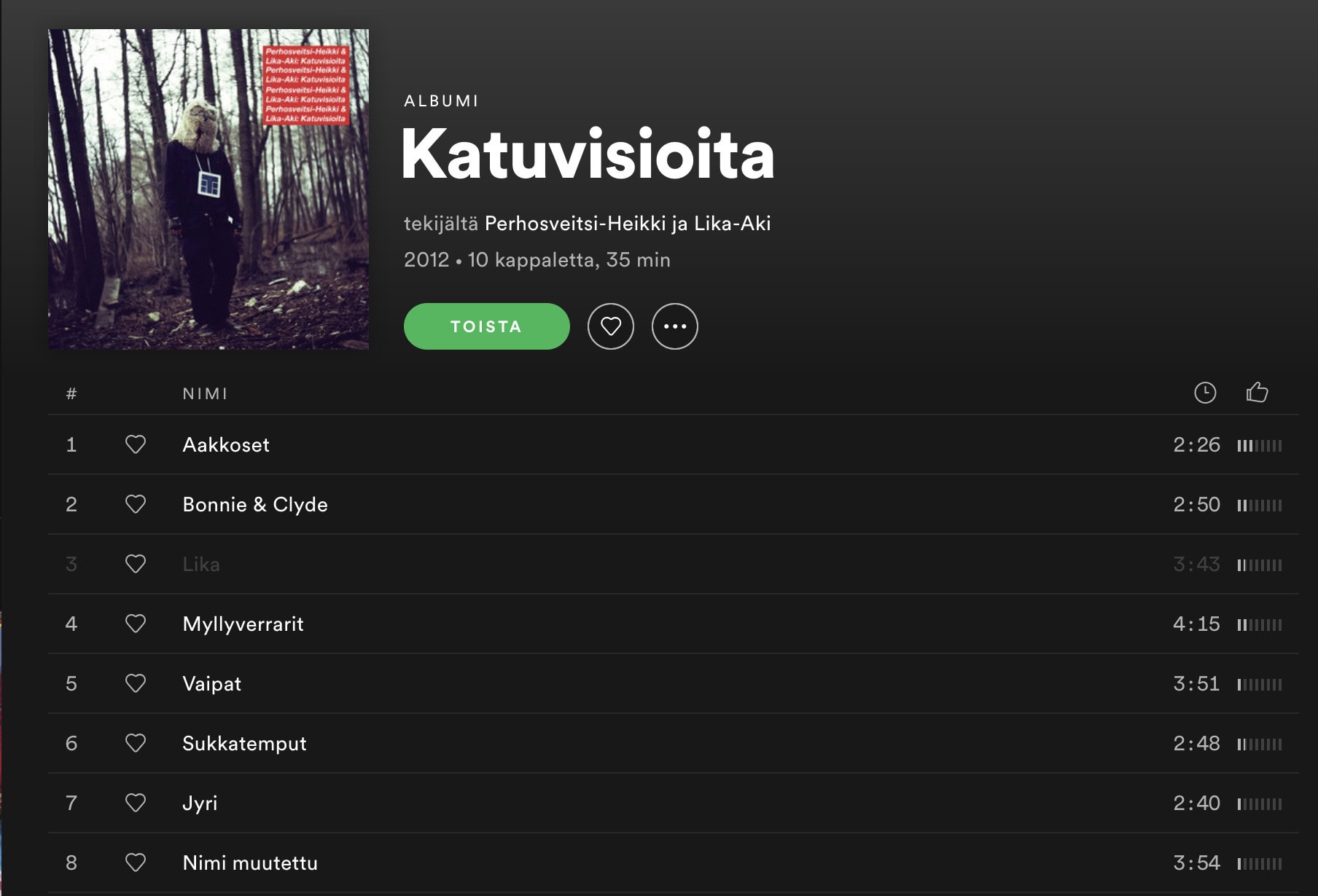 Nyt nämä kappaleet, Ruger Hauerin Polonium ja Perhosveitsi-Heikin ja Lika-Akin Lika, on poistettu Spotifysta.
